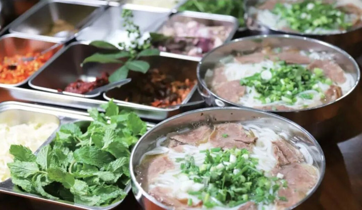 当然也有西南风味,滋味曼妙的羊肉米线,用薄荷叶激发清香爽口,喝口汤再嗦一口米线,清香麻辣的滋味瞬间传遍全身。