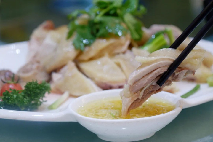 不得不提湛江白切鸡,选用广东“三大名鸡”之首的湛江三黄鸡。皮黄肉紧,入口鲜香,鸡肉嫩滑一点都不柴,这就是传说中的“鸡有鸡味”。