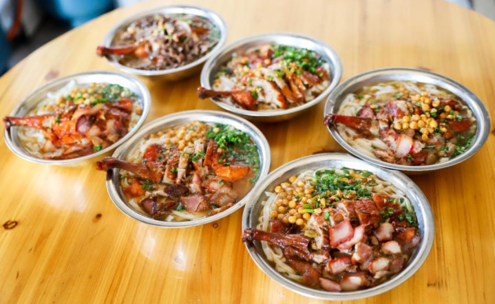 百色还完美延续了广西人爱嗦粉的优良基因,用一碗热气腾腾的烧鸭粉,就能轻松捕获阿球的味蕾。
