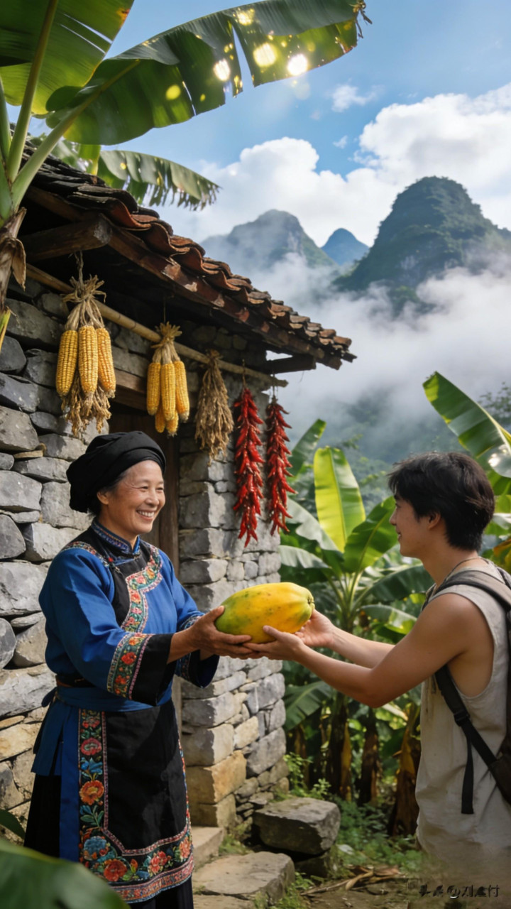 不用赶行程的日子里,我把时光过得很慢。清晨去德天瀑布,赶在旅游团抵达前独享静谧,看阳光穿透水雾凝成彩虹;午后去附近的岩应村,石头房子旁的香蕉林随风摇曳,村民见了会笑着递上新鲜木瓜;傍晚蹲在广场看老人打壮族陀螺,买一串烤猪蹄配糯米糍粑,看晚霞把天空染成橘红色。每月逢集的日子最热闹,越南商贩带来成堆的热带水果、手工织物,语言不通就靠比划,却总能在相视一笑中完成交易,那份淳朴信任,在城市里早已难寻。