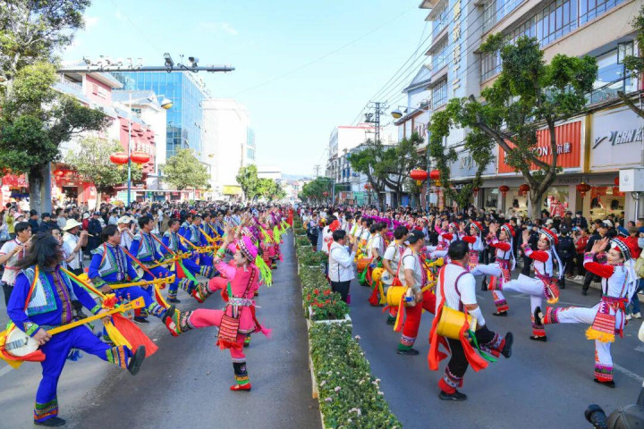 弥勒各族群众像石榴籽一样