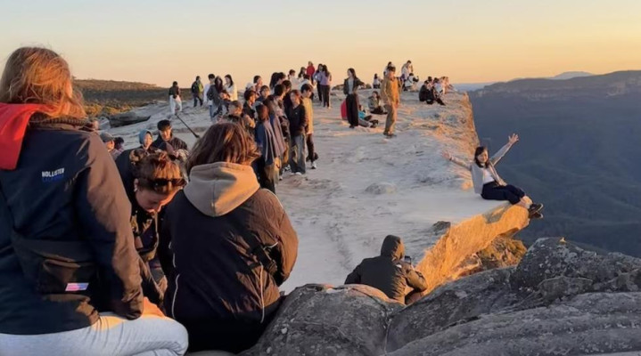 Wentworth Falls 居民 Jo Di Pietro就住在林肯岩附近,她表示有时候岩石上同时会挤着两三百人。