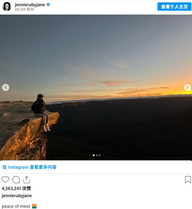 2023年韩国女团Blackpink成员Jennie Kim在澳洲举行演唱会后,到访蓝山林肯岩,并发布了自己坐在岩石边缘的照片。