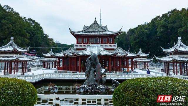 红墙、黄瓦、皑皑雪:岳阳冬日的极致中式美学。(图源:红网论坛@钱江潮)