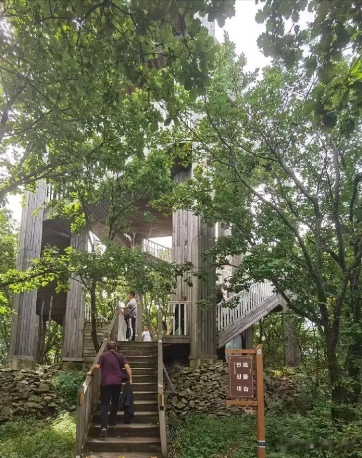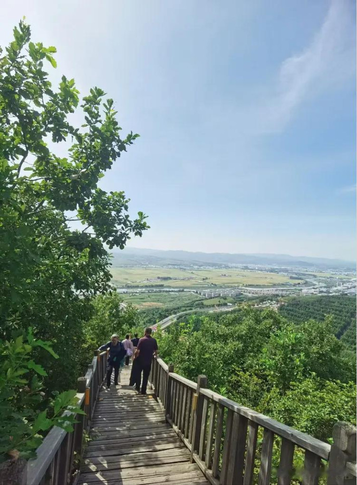 下山的路,在山的另一侧,也有木栈道直达山底。山上山下,满眼绿色,周围山、水、林、田相互融合,自然与乡土景观相得益彰,展现了这片黑土地上浓郁的民族、民俗风情。