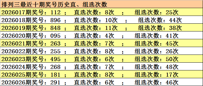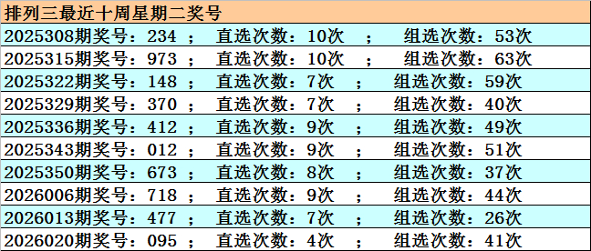 开奖回顾:排列三2026026期开奖:291,组六,和值12,跨度8,奇偶比2:1,大小比1:2。