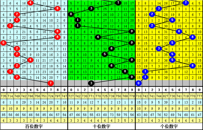 十位推荐:奇偶号码近期持平,上期开出奇号,本期奇号重复出现;另外,该位0、1路号码近期大热,本期该位参考号码3。