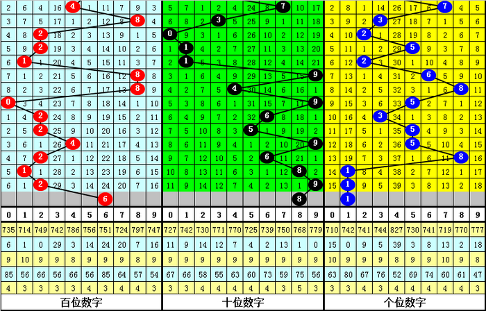 上期第二位奖号为:9,间隔2期之后开出,表现相对热,前10期该位热码开出次数较少,milan本期注意该位热码逐渐回暖,关注号码8。