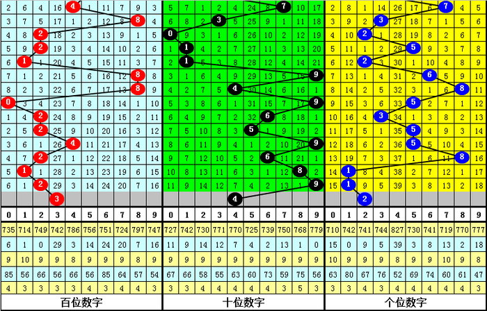 百位分析:该位上期开出号码2,最近10期该位012路比为1:3:6,其中2路号码间隔1期再次出现,本期可以放弃2路号码,注意0路号码开出,参考3。