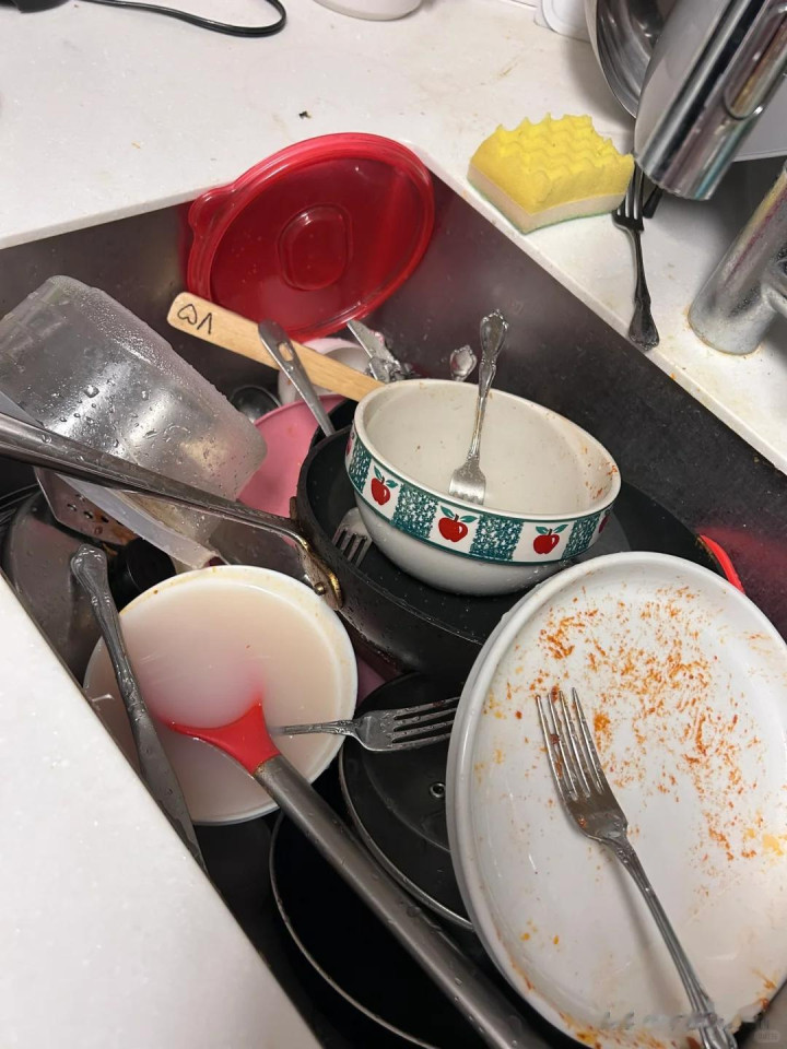 走进厨房,就是一水池的碗盘没有清洁,油渍和食物残渣粘在碗盘上,让人看了一个头就两个大。