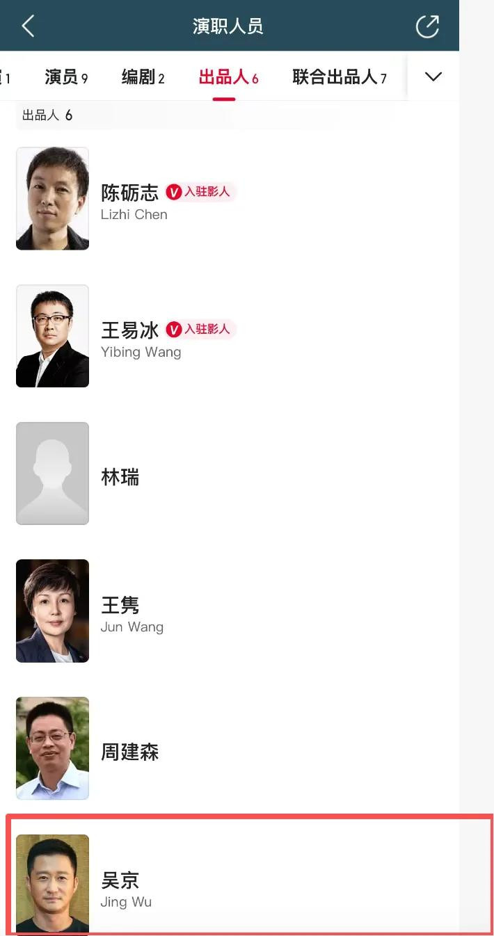 看一下电影的资本和制片人吧,几家公司一起亏钱,发现了几个很熟悉的明星,大名鼎鼎的吴京也在其中的投资人行列。