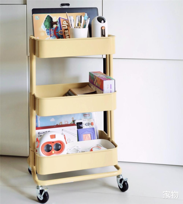 同样是宜家最为经典的小推车,我记得前几年也算是销量数一数二的单品,曾经家里有过一个,感觉还不错,但这回有娃了,才真正让我意识到了,这三层铁艺架身的小推车,到底有多么灵活实用。