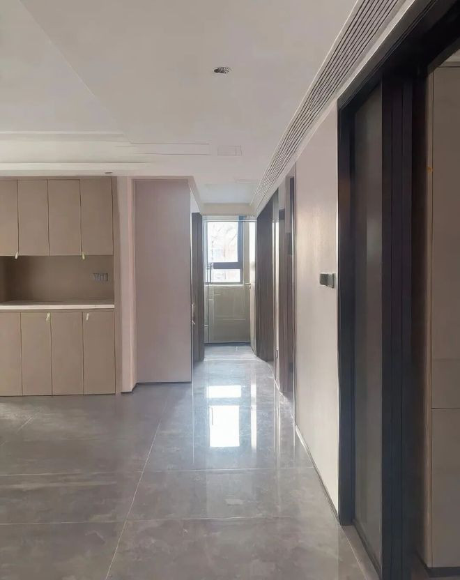 一来有了一块放杂物的空间,规避过道空间容易浪费的尴尬;二来端景台的存在,也缓解了入户后的视觉拥堵性。