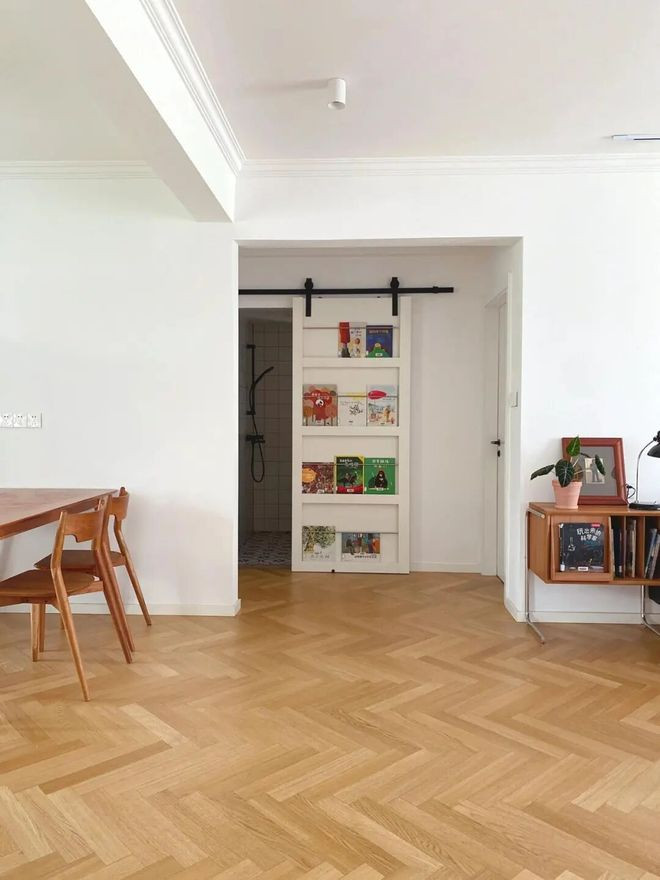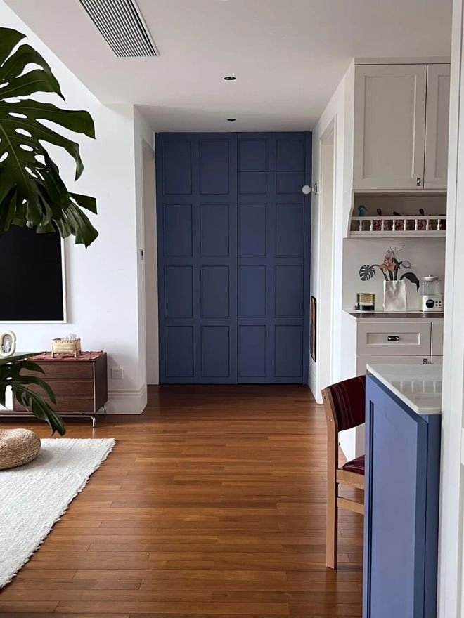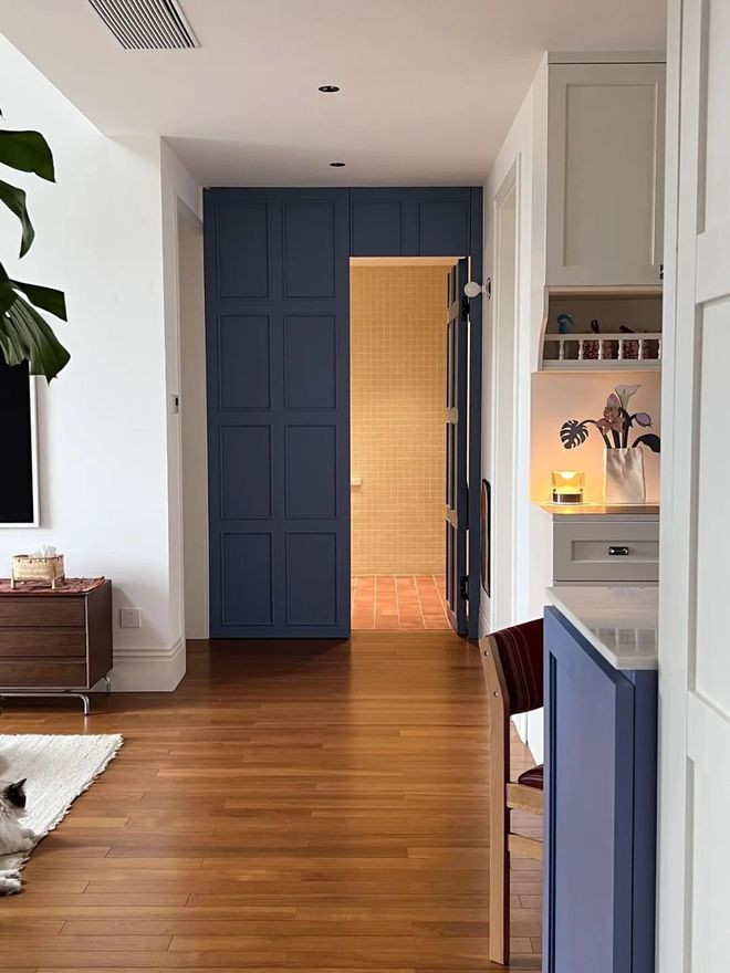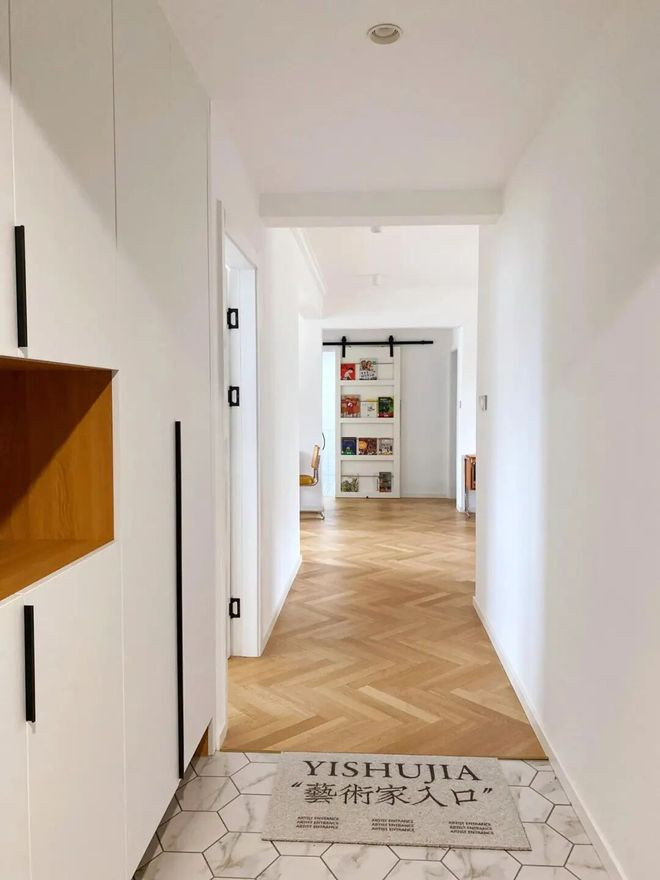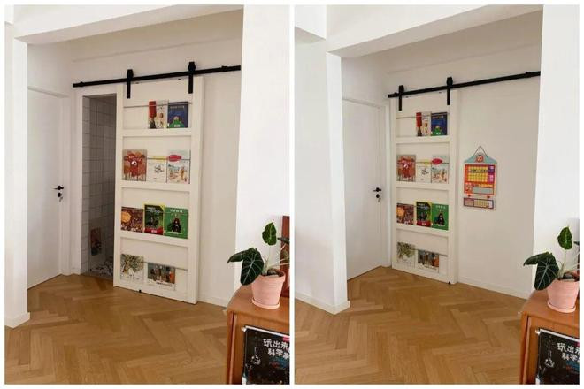 网友@懒玉:入户门对着厕所,格局又不好改怎么办?那就和我一样设计个隐形门吧。实用美观,还显得很高级。