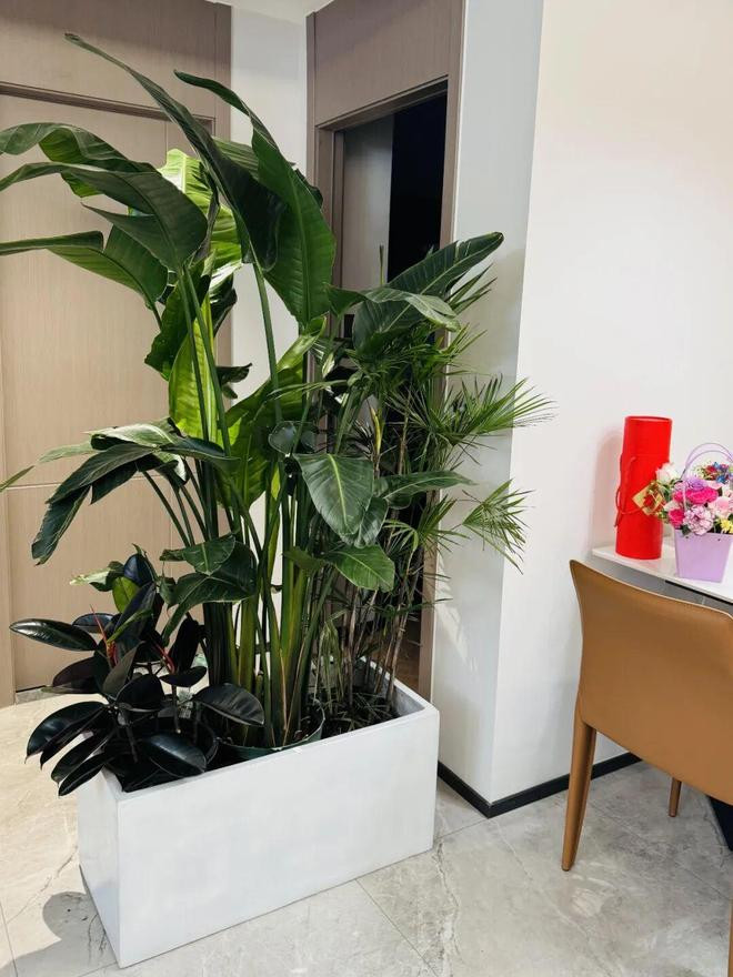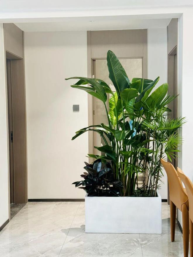 水泥盆尺寸为80X38X38cm,刚好可以遮挡卫生间门,milan盆里种了天堂鸟、黑金刚、金山棕等绿植,前后差不多花了500块。