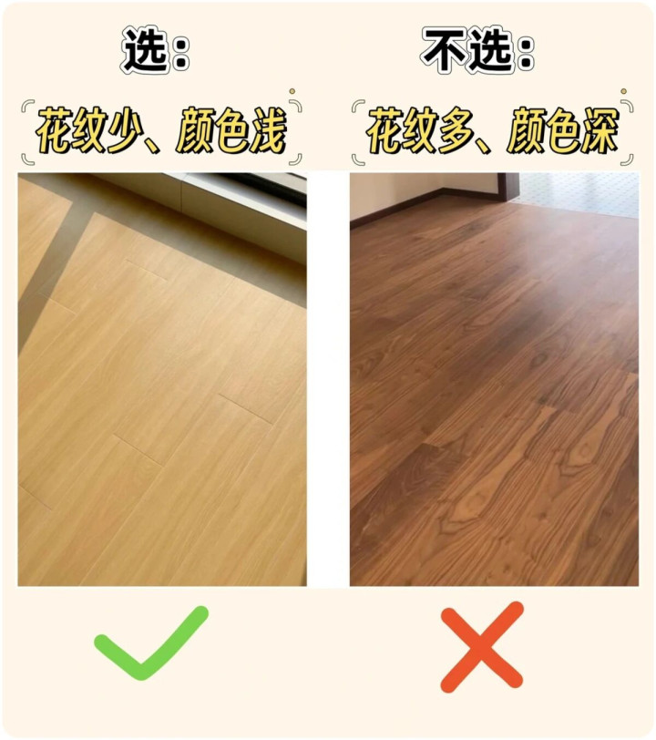 ▲花纹少、颜色浅的:铺贴效果会更加自然;