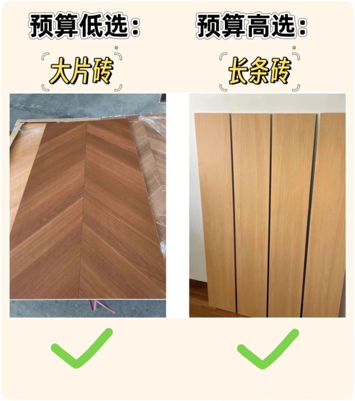 预算高:长条砖铺贴效果肯定更好一些更接近木地板铺贴效果。