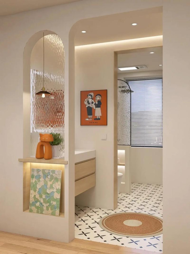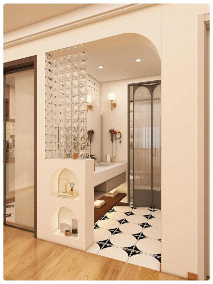 安利一个近几年特别火,而且实用性直接拉满的改造思路——卫生间干区「半墙设计」。它可不是光为了好看,配上合理的收纳优化,小卫生间也能迎来春天。做完后,邻居来参观都夸:“没想到还能这么玩!”