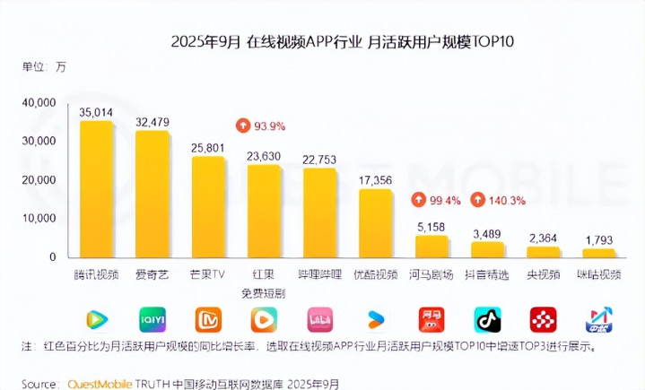 与此同时,宏观环境的挑战依然存在,广告市场复苏缓慢,平台增长也已进入瓶颈期。根据QuestMobile2025年9月的数据,爱奇艺与腾讯视频和芒果TV的月活规模差距已越来越小,还受到红果短剧的强烈冲击。