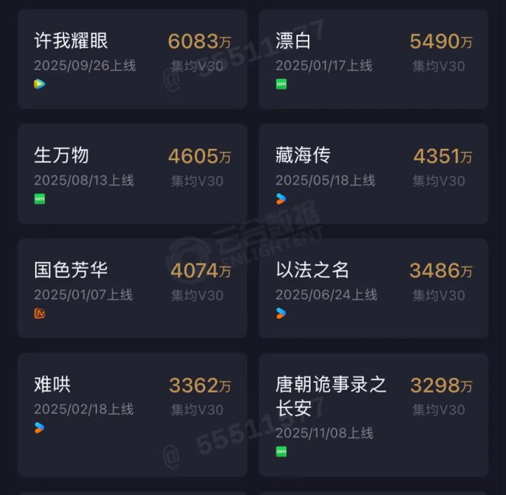 爱奇艺2023年有现象级的《狂飙》,2024年有《莲花楼》等热剧维持热度。但进入2025年,虽然《唐诡3》《生万物》《漂白》等取得不俗的成绩,但爱奇艺没能再次推出引爆全网的“剧王”。没有爆款,就难以拉动会员数量的显著增长和广告收入的提升,收入天花板效应立现。