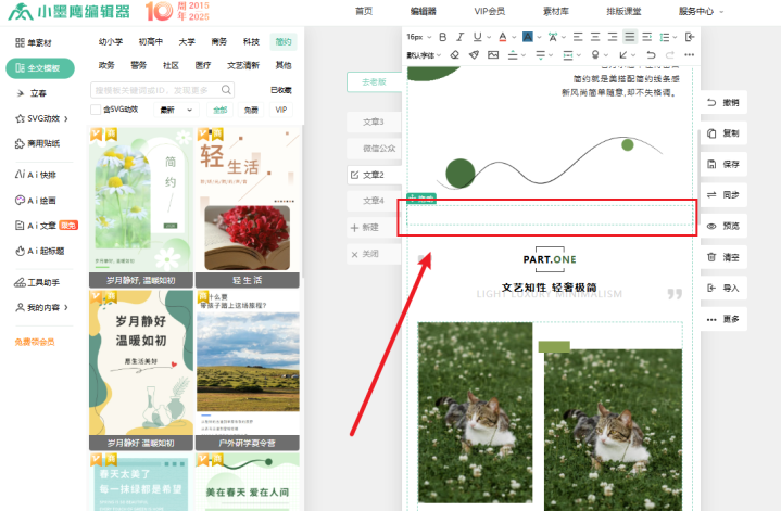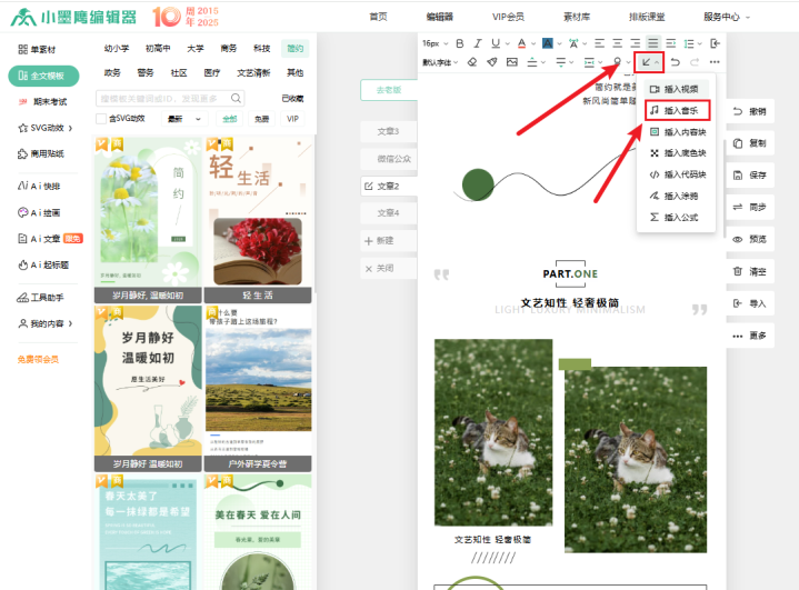 打开小墨鹰编辑器进入图文编辑页,把鼠标光标移到想插入音乐的地方(比如开篇引言后、图文过渡处),确定好位置后停顿,确保排版逻辑不脱节,音乐和文字内容呼应协调。