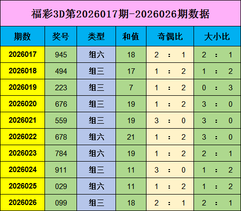 王林福彩3D奖号2026027期推荐:
