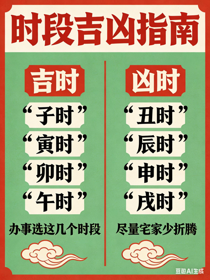 时段吉凶分清楚:子时、寅时、卯时、午时吉,办事选这几个时段;丑时、辰时、申时、戌时凶,米兰尽量宅家少折腾。