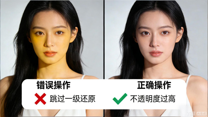跳过“一级还原”直接提亮:如果原片偏色、明暗失衡,直接用叠加模式,只会让偏色更严重,肤色蜡黄的问题也会加剧,一定要先校准白平衡和基础明暗;