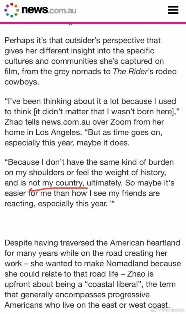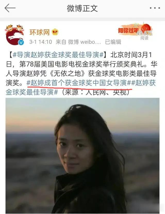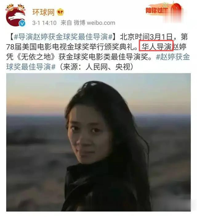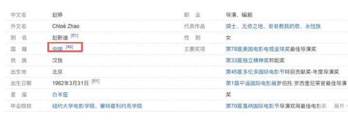一是国籍问题。2021年她拿金球奖时,环球网报道称其为 “华人导演”,却没明确国籍,后来被指出后才补充词条,但始终没正面回应国籍争议。