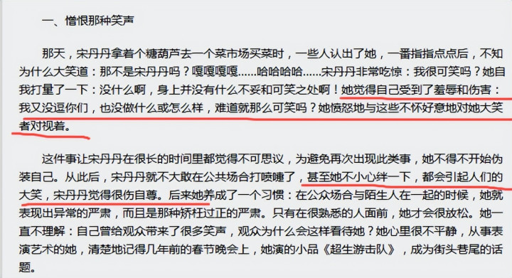 之前央视采访时,宋丹丹说过,自己在公共场合被路人围观大笑,觉得是被嘲笑,是一种羞辱。