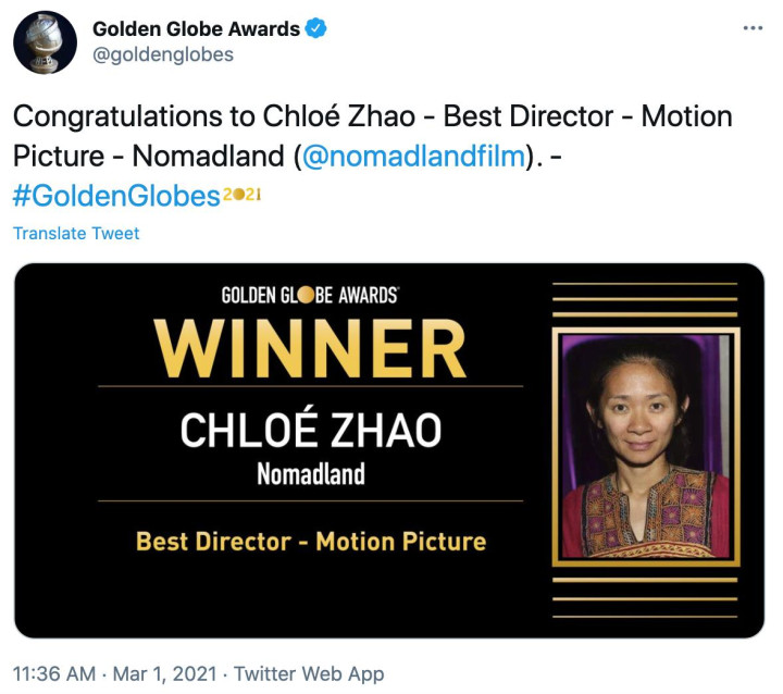 1月22日,第98届奥斯卡金像奖公布了提名名单,在“最佳导演”名单里,赵婷的名字赫然在列。