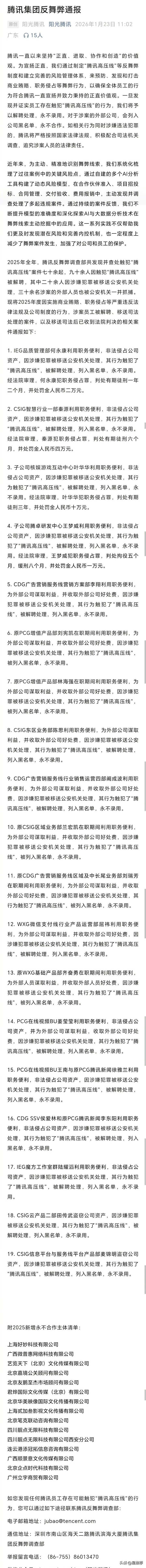 此次通报是腾讯2025年反舞弊行动的一部分:全年共查处舞弊案件70余起,90余人被解聘,米兰其中20余人因涉嫌犯罪被移送公安机关(含姜莹莹),30余名外部涉案人员被抓获,14家涉事外部公司被列入“永不合作”名单。