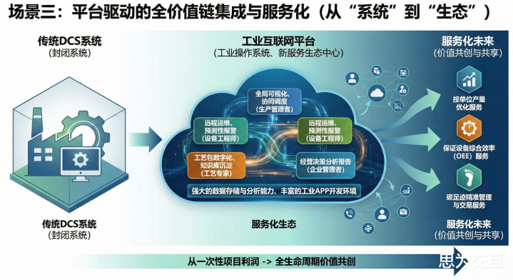 最终的融合场景,超越了工厂的围墙,指向了商业模式的革新。DCS与IIoT的深度结合,催生了一个以工业互联网平台为核心的全新服务生态。